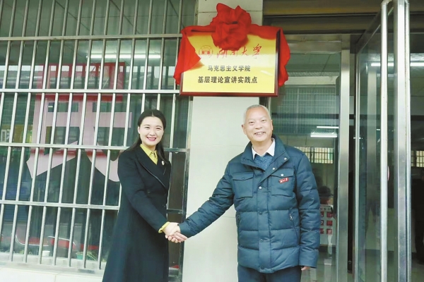 12月12日,湖南大学马克思主义学院基层理论宣讲实践点在沅江市南嘴镇百家沟村揭牌成立,以“高校+基层”共建方式,推动基层理论宣讲工作。在今年“献策湖南”金点子征集活动中,有建议人提出,依托湖南科教资源优势,不断提升基层理论宣讲的覆盖率、到达率。