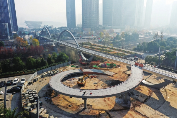 1月3日,梅溪湖超级中轴的重要组成部分——中轴线慢行系统项目桥梁建设已基本完成,进入扫尾阶段。该项目东临龙王港,西临三环线,北临雪松路,南临梧桐路,主要建设内容包括中轴线二层连廊节点、赏月路节点、梧桐路节点三个节点的立体过街设施。项目建成后,将促进片区交通微循环,提升居民出行体验,打造宜居城市新名片。