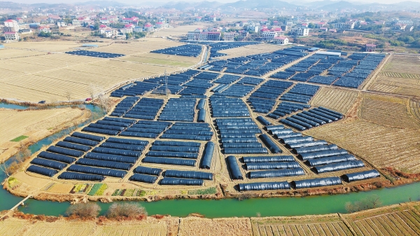 1月6日,航拍邵东市流泽镇吉星村羊肚菌种植基地。近年来,邵东市充分利用资源优势,调整农业产业结构,因地制宜发展“大棚经济”,探索“社会主体+合作社+基地+农户”运营模式,提高农产品经济转化效益,拓宽群众增收渠道。