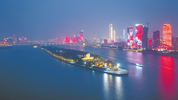 1月7日傍晚,华灯初上,一艘游船经过湘江橘子洲水域。2024年,湘江长沙段水上旅游客运量达74.88万人次,夜游湘江已成为市民和游客领略长沙“一江两岸”风光的网红打卡方式。