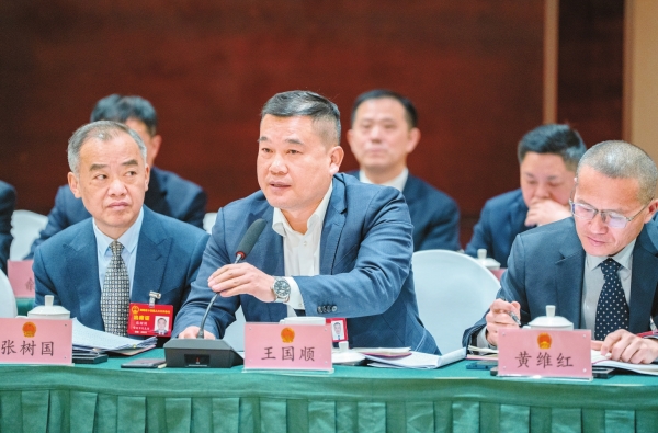 1月15日上午,常德市代表团王国顺代表(中)就开辟合作社线下业务建言。