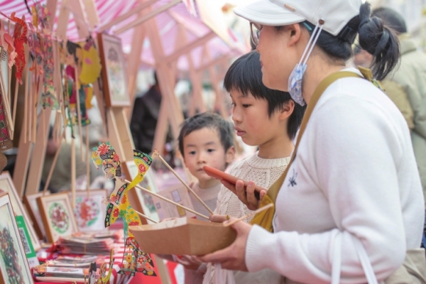 1月19日,湖南湘江新区洋湖水街,小朋友体验皮影戏道具。近日,2025年湖南“非遗贺新春——赶个年味集”蛇年非遗大集在长沙举行,包括年俗体验、美食品鉴和非遗互动等多个板块,让市民和游客感受“热热闹闹赶大集”的传统年味和烟火气息。