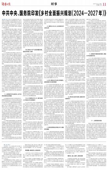中共中央、国务院印发《乡村全面振兴规划(2024—2027年)》
