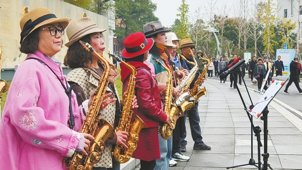 1月8日,衡阳市萨克斯爱好者正在南岳第一峰景区北门旁的场地排练。2024年6月,衡阳市萨克斯爱好者协会提出,希望能扩大、翻新萨克斯爱好者排练场地。该建议很快被采纳,不到两个月时间,新的萨克斯之家便建成了。敖魁贞 摄