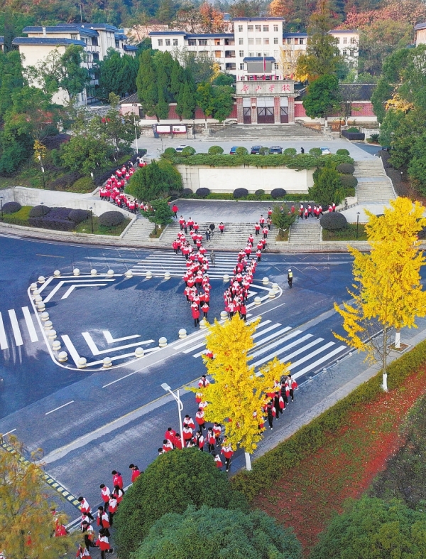 2024年12月2日,参加“我的韶山行”红色研学的学生有序通过马路。韶山市在听取群众意见建议后,将韶山学校思政营地门口的韶峰路花坛改造成行人等待集合区,方便学生安全快速通过马路。 喻名才 摄