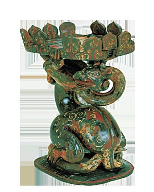 在楚地的原始信仰里,操蛇、珥蛇、践蛇的形象往往与神巫紧密相连。它们被视作神巫与神灵沟通的媒介,拥有着神秘的力量,是权力与权威的象征。湖北曾侯乙墓彩绘内棺及五弦琴上反复出现的珥蛇、践蛇神人形象,为我们揭开了楚地神秘宗教仪式的一角。马王堆帛画中,龙蛇反复出现,总共有六处之多。在战国秦汉时期的文献中,蛇能飞升,与凤、龙、麒麟等动物一同出现,作为圣人得道、神人升天的随从。楚墓出土的陶器、青铜器、漆器,以及马王堆汉墓中,还出土了很多带有蛇图案的文物。