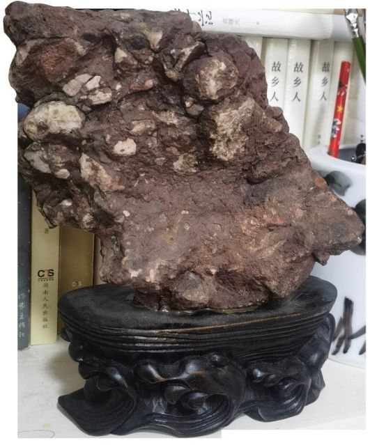 书,依然是在“书”到用时方恨少的心理作用下,一本一本地进着。早已是顶天立地地把几个书架塞满了,接着,又强势地把楼地板占去了一大块。有的,就在沙发后靠背上,书桌上堆着。妻嗔怪,书斋真成了“书灾”了。当然,挤在这空间里的,除了书,占着突出位置的,还有几块石头。我不是石头的玩家,更不懂石头的收藏。但我得说说书房里的石头。
