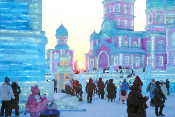 进入冬季,“冰城”哈尔滨市换上“冰雪新装”,一块块冰经过华丽蜕变,或化身为琼楼玉宇,或“淬炼”成玲珑冰雕,最终融入冰雪大世界、冰灯游园会等各处冬季景点中。