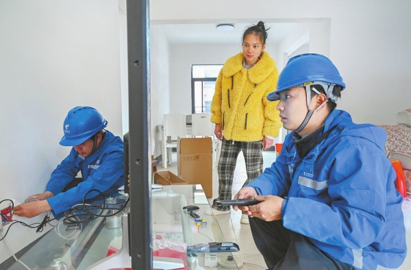 1月18日,资兴市兴宁镇集中安置点福兴苑,电信工作人员上门安装电视网络。 |