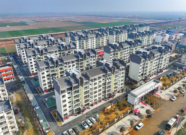 1月21日,华容县团洲乡团洲新村一期14栋崭新的6层白墙青顶楼房整齐林立,首批360户安置户完成整体搬迁。 |