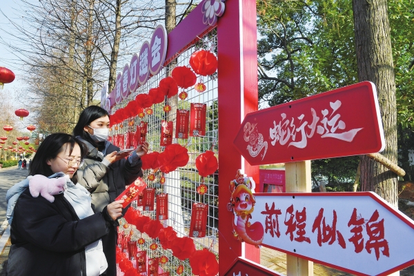 1月29日,大年初一,游客在长沙生态动物园参加蛇年科普主题新春游园活动。现场猜灯谜、成语接龙、科普大课堂等活动丰富多彩,引人入胜。