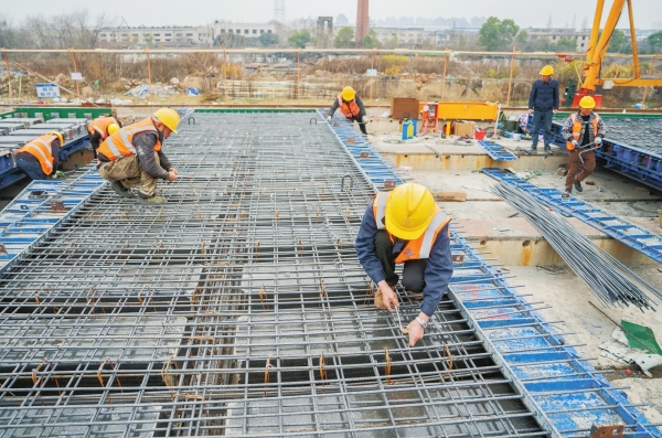 2月6日,湘潭市下摄司大桥项目工地,工人在预制桥面板。目前,该项目施工人员陆续返岗,各施工点位也开始忙碌起来,全力以赴推进项目建设,确保6月30日前建成通车。
