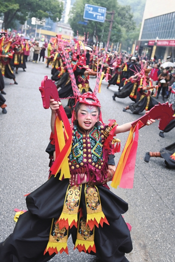 2月12日,2025年“仙境张家界 共享中国年”张家界元宵灯会上的民俗表演。