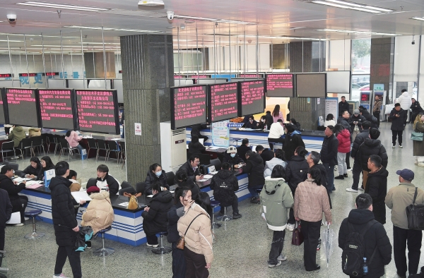 2月14日,长沙市人力资源市场,求职者在“春风行动”专场招聘会上应聘。当天共有34家企业到会,提供各类岗位7000余个。春节假期过后,长沙市人社局持续开展送政策、送岗位、送信息、送服务,实现“月月有主题,周周有专场”,搭建招工就业新平台。