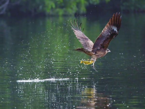 1月27日,长沙市雨花区跳马镇,国家二级保护动物黑鸢在空中盘旋,发现鱼浮出水面,迅速俯冲将其捕获,然后带到安全的地方享用。 |