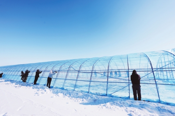 目前,全国产粮第一大省黑龙江省垦区各地陆续进入备耕季。图为2月20日,在北大荒农业股份有限公司友谊分公司水稻育秧基地,种植户进行扣棚作业。