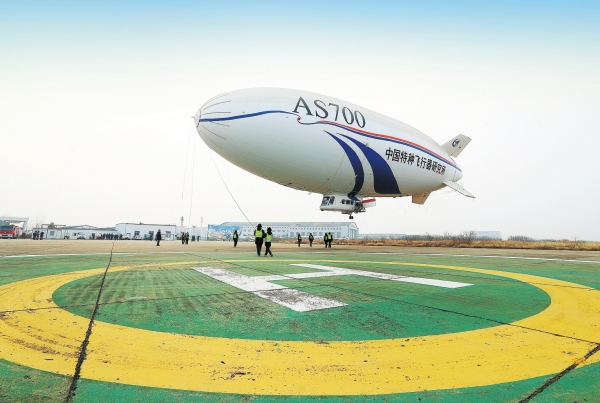图为当日拍摄的国产电动型飞艇AS700D。(中国航空工业集团特种飞行器研究所供图)