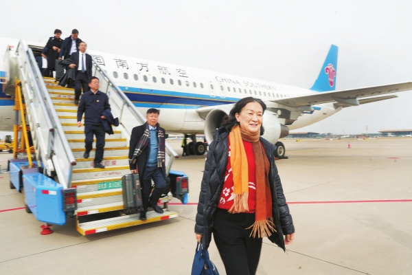 住湘全国政协委员隋忠诚、张健、何寄华、陈英武等同机抵达。