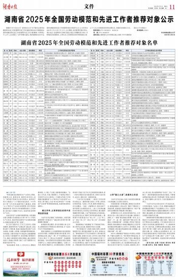 湖南省2025年全国劳动模范和先进工作者推荐对象公示