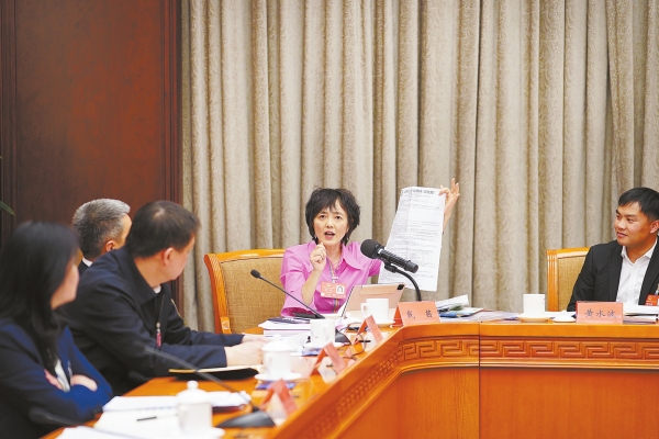 3月6日,戴茵代表在湖南代表团分组会议上发言。