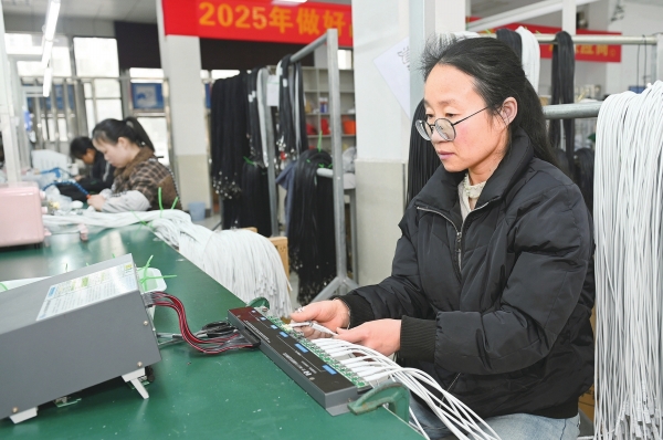 3月13日,洞口县高沙镇高沙村金宏源电子有限公司,员工在生产电子产品。近年来,该县通过村企联建等方式,引进民营经济进乡村办厂,方便农村剩余劳动力就近就业,助力当地经济发展。