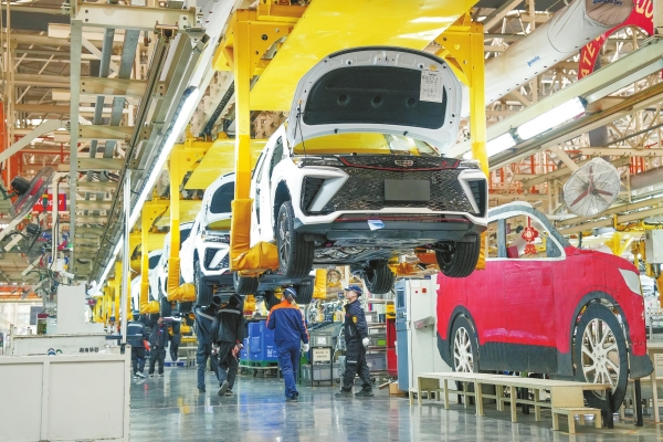 3月22日,在位于湘潭经开区的吉利汽车制造基地,工人加紧赶制订单产品,满足市场需求。近年来,湘潭市聚焦做大做强长株潭汽车产业集群,规划建设“长株潭新能源汽车城”,推动汽车制造过程智能化升级,提高生产效率、降低生产成本,打造新质生产力集群。
