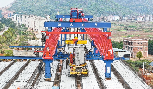 4月5日,新田县龙泉街道刘家桥村桂(东)新(田)高速桂阳至新田(宁远)段刘家桥特大桥建设工地,工人在坚守岗位进行桥梁施工作业。清明假期,岳阳路桥的建设者们放弃休息,奋战在桂(东)新(田)高速项目建设一线,确保项目如期建成通车。