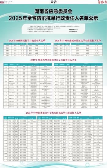 湖南省应急委员会2025年全省防汛抗旱行政责任人名单公示