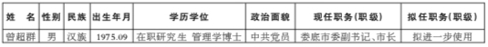 为了加强对干部选拔工作的监督,提高识别和任用干部的准确程度,现对省委常委会会议研究决定的下列拟任人选进行任前公示:
