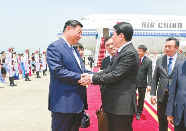 新华社河内4月14日电 当地时间4月14日中午,中共中央总书记、国家主席习近平乘专机抵达河内,应越南共产党中央委员会总书记苏林、越南社会主义共和国主席梁强邀请,对越南进行国事访问。