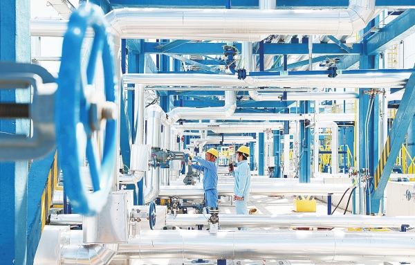 4月18日,湖南石化年产5万吨环保型环氧氯丙烷工业示范装置项目开车现场,员工在进行打通流程操作。该装置采用环氧氯丙烷绿色清洁生产工艺,与传统生产工艺相比,物料消耗和“三废”排放大幅降低,其中废水减排率超90%。