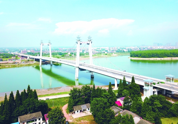 引入新材料。益阳青龙洲大桥是益阳首座采用钢—UHPC组合矮肋桥面板的自锚式悬索桥,该桥面板引用由水泥、矿物掺合料、细集料、钢纤维和外加剂等材料组合而成的超高韧性混凝土,在大幅提高桥面刚度的情况下反而减轻了自身重量,同时还能降低桥面铺装出现车辙开裂、滑移脱层等病害风险,有效延长了桥梁使用寿命。
