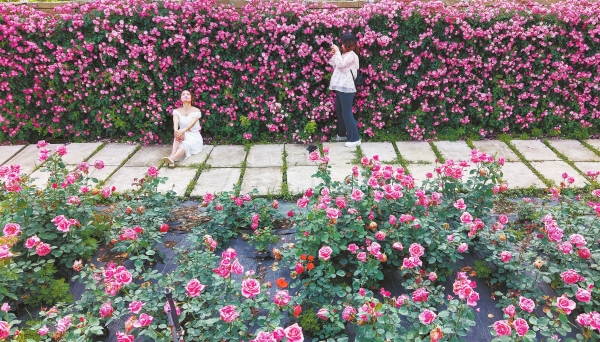 4月28日,游客在邵东市周官桥乡联合村怡卉园赏花拍照。时下,该园的玫瑰、月季、蔷薇等花竞相盛放,吸引众多游客前来赏花游玩。近年来,邵东市依托“花经济”,推进农业、林业与旅游等产业深度融合发展,为农民增收致富提供新途径,让文旅产业成为繁荣农村、富裕农民的新兴支柱产业。