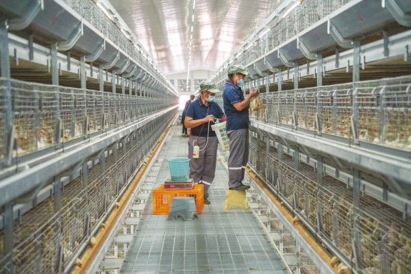 4月28日,永州市冷水滩区高溪市镇湖南群盛禽业有限公司,工作人员在为育成期蛋鸡打疫苗。近年来,冷水滩区大力发展蛋鸡养殖产业,通过政策扶持、技术升级和产业链延伸,推动产业自动化、规模化、智能化发展,带动农业增效、农民增收。