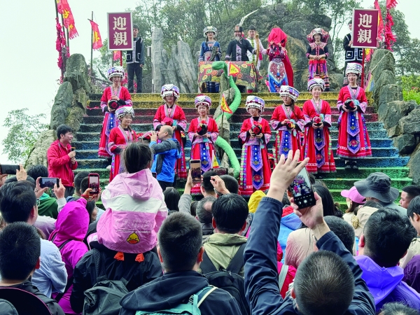 在宜章,莽山风景区策划了花婆婆斗舞、刀梯撒花、卖花郎飞花令、花神献舞、花神巡游、机器人巡山等一系列特色文旅活动……
