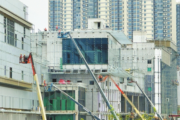 5月4日上午,建设者在长沙永旺梦乐城湘江新区项目施工现场作业。为保障该项目今年年底投用,“五一”假期,中建五局的建设者们坚守岗位,保质保量抢抓工期。永旺梦乐城湘江新区项目总建筑面积约28万平方米,集购物、餐饮、休闲娱乐等业态于一体。