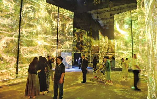 5月10日,湖南博物院,游客在参观“生命艺术——马王堆汉代文化沉浸式数字大展”。展览由时空、阴阳、生命三个板块构成,生动阐释马王堆汉墓的墓室构造、纷繁器物、文化理念及人文思想,巧妙呈现中国古代对宇宙、生命的宏大想象与艺术表达,为观众构筑一场可知可感的“时空之旅”。