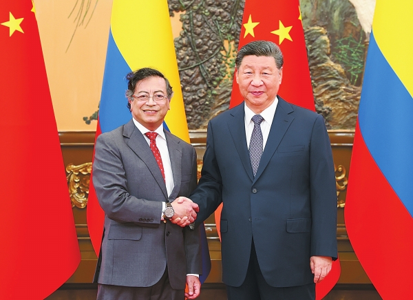 佩特罗表示,哥伦比亚与中国的友好关系源远流长,哥方期待深入发展对华关系。双方要深化政治互信,加强相互支持。共建“一带一路”,拓展贸易、基础设施、新能源、人工智能等领域合作,改善人民生活。当前,国际局势复杂多变,个别国家唯利是图的做法不利于世界,各国应团结应对。哥方愿同中方密切配合,捍卫国际公平正义,维护发展中国家共同利益。