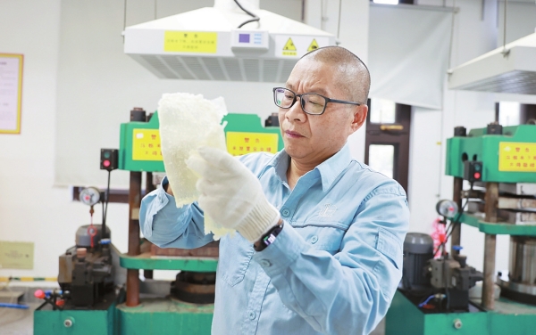 4月,他主导研发的SEBS(氢化苯乙烯类热塑性弹性体)产品与欧洲客户签订年度采购合同,这是中国首次以长协形式向国际高端市场输出绿色橡胶材料。