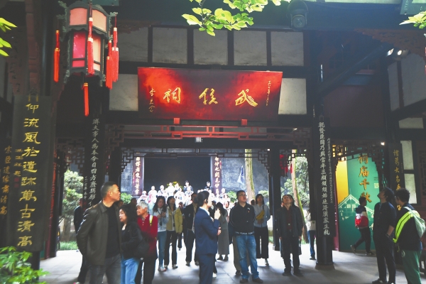 “此联虽创作于清代,却道尽了诸葛亮治蜀精髓,堪称武侯祠的‘镇祠联’!”站在诸葛殿前,龚飞凝视着楹联,称赞道:“字字句句都值得细细品味!”