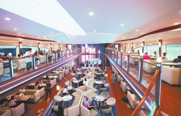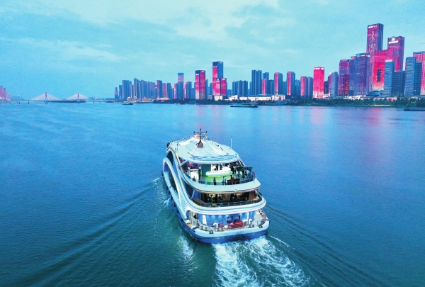 5月19日,长沙三馆一厅游轮码头,湘江首艘新能源游轮——长沙城发集团橘子洲公司的“橘洲号”举行首航仪式。该游轮总长49.99米,最大载客量500人。
