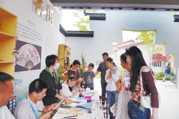 一个月前,宁乡木活字印刷术代表性传承人陈娜就在为四省非遗联展做准备,围绕《岳阳楼记》、屈原诗词、端午节元素等制作了多个印刷版。“几乎每天都有上百人来体验,不少留学生还将印刷作品带回家,说要好好收藏。”陈娜看见这项非遗受到这么多人喜欢,尽管每天双手沾满黑墨,也乐在其中。