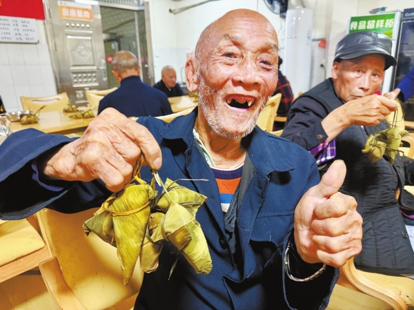 5月29日,通道侗族自治县社会福利院,收到“爱心粽子”的老人开心不已。当天,爱心市民来到该福利院,陪伴老人提前过端午节,让老人们感受到社会大家庭的温暖。