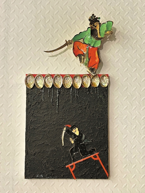 “我不停地画着画,我的画也在不停地画着我。”“过去的我+现在的我+未来的我=更好的我。”“令我倾心的画,都分辨不清是我在理解它呢,还是它在理解我”。张渡从戏剧神话人物的演绎里梳理出了自己的理想国。《你我都在梦想里》里巨大的双翅,《被折叠的故事汇和地方戏》幕布上描绘的各路鲜活的神仙,《听曲——三岔口》所展示的滑稽的武戏,都与现实生活形成了巨大反差,隐喻了灵魂深处孤独与狂热的深刻独白。画展策评人用这样的诗句评点:“一千个蝴蝶的骸骨,唾在斑驳的墙壁上,一大群微风,轻柔抚过……”
