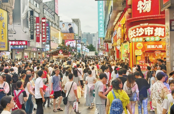 5月31日,端午假期首日,长沙五一商圈人潮涌动,热闹非凡。