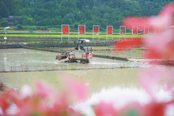 6月2日,通道侗族自治县双江镇长安堡村水稻制种基地,农机手驾驶农机在翻耕整地,准备移栽杂交水稻制种。近年来,该县采取“制种企业+合作社+农户”模式,把杂交水稻制种作为“一县一特”重点产业打造,持续带动农业增效、农民增收。