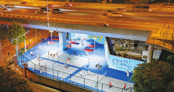 6月3日晚,湖南湘江新区联丰路桥下运动场,市民在运动。近年来,该区利用桥下空间修建体育设施,盘活公共空间,为居民创造“出门就能锻炼”的基本条件。