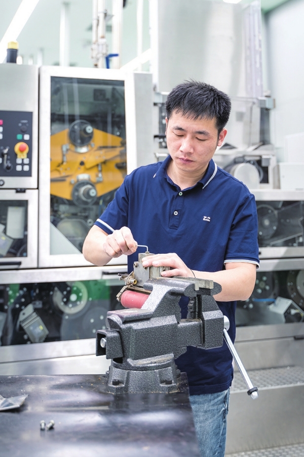 “匠心,凭的是一股子钻劲。”早在2012年,长沙卷烟厂引进行业第一台ZJ116-ZB48国产超高速设备。驯服这台设备,技术消化是“入门槛”。喻树洪主动请缨组建攻关“突击队”,凭着一股不服输的钻劲、韧劲,先后攻克了“内框纸拼接不好”“飞内框”等11项技术难题,短短一年时间内便摸清了设备的“脾性”,让实现保质提速有了坚实的技术保障。
