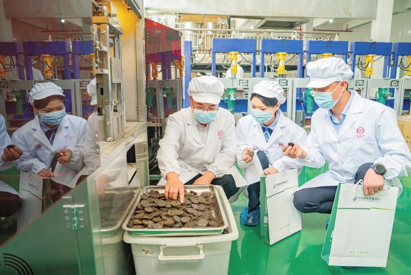 6月4日,位于安化县的湖南省褒家冲茶场有限公司,银行工作人员在生产车间了解资金需求情况。近年来,中国邮政储蓄银行安化县支行落地黑茶互惠贷项目,先后支持该县褒家冲、千秋界、云天阁等40余家黑茶企业纾困融资,贷款资金累计近1亿元,金融“活水”持续滋养当地黑茶产业创新沃土。
