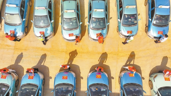 6月4日,新田县大成出租车公司30余台出租车经安全检查后,将免费为考生提供送考服务。刘贵雄 何新瑞 摄影报道(湖南图片库)